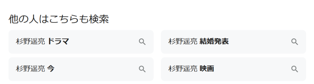 杉野遥亮さんをGoogle検索すると検索候補にこのような結果が出てきます。